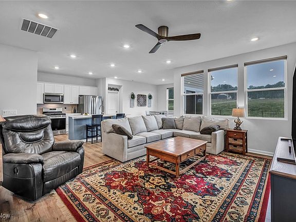 Built by Pulte Homes in 2024, priced below today's build cost and is move-in ready with numerous upgrades already included in Wadsworth Township. You can be in before the holidays! Located on over .34 of an acre fenced-in property in the Mount Eaton Estates community just minutes to charming downtown Wadsworth. This thoughtfully one level designed home with full basement features an open floor plan with stunning kitchen with quartz countertops, tiled backsplash, upgraded cabinetry, and large island with ALL kitchen appliances included. The owners' suite has a walk-in closet and en-suite bath with double vanity and walk-in shower. Other highlights include a 1st-floor laundry room, attached 2-car garage, basement with 9-ft ceiling and rough-in plumbing for a full bath, and a full fenced-in yard with irrigation system already installed. In addition to many builder upgrades, such as quartz countertops in the kitchen, LVP flooring, upgraded appliances and refrigerator, ceiling fans, crown molding, wainscoting, and much more, since moving in a fence was installed, Ring doorbell, and window treatments throughout. INCLUDED are kitchen appliances, the Ring doorbell, and all window treatments. Conveniently located near I-76, OH-57, shopping, restaurants, and many other local attractions. This home is a must see!