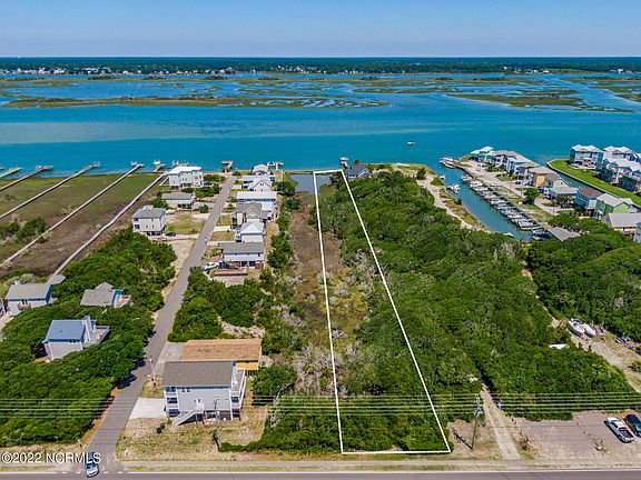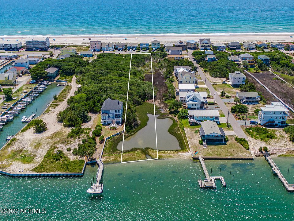 Build your retreat on this street to sound undeveloped property in Topsail Beach. This large parcel has had preliminary work done showing a nestled building envelope of 40 feet by 40 feet possible even with room for a potential pool. Proposed layout shows a dock on the sound front with width for two boat slips. Preliminary survey available with building envelope and wetlands marked. Drone footage depicts potential view shots from a reverse floor plan. Not many of these jewels left on the South End! Unique oasis awaits. 79.17 feet of deep water sound frontage gives many boating options!
