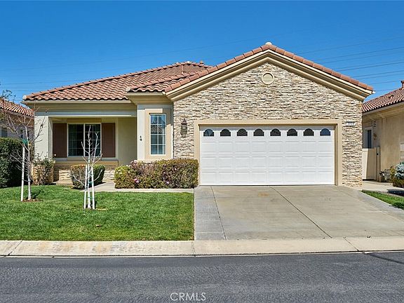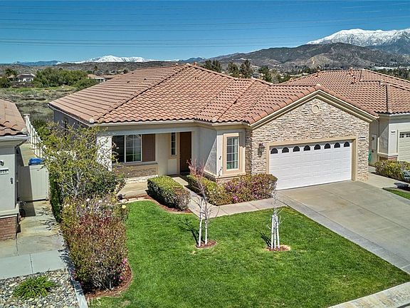 Lovely "Trillion" home, situated in Solera, a 55+ community, offering a serene and convenient lifestyle. The home boasts a prime location with BREATHTAKING, UNOBSTRUCTED MOUNTAIN VIEWS – a rare and highly sought-after feature. This two-bedroom, two-bathroom layout is spacious and well-designed, enhanced by a versatile den/office space, ideal for working from home or pursuing hobbies. The exterior has been recently repainted, presenting a fresh and welcoming curb appeal. Inside, you'll find a tranquil atmosphere created by the cool, calming natural paint tones. The flooring is predominantly stylish laminate wood, complementing the tiled bathrooms and kitchen, creating a harmonious blend of comfort and elegance. All appliances are included, making for a seamless move-in experience. This property offers more than just a house; it offers a lifestyle of comfort, convenience, and breathtaking natural beauty. The Solera 55+ gated community has a pool, spa, clubhouse, indoor gym, indoor walking track, tennis courts, billiards, meeting and banquet rooms, bocce ball, mail room, library, classes, clubs, group trips and excellent 24-hour security. Basic Spectrum cable and internet are included with your HOA. Solera is close to Palm Springs, Redlands, the scenic mountain town of Oak Glen, Cabazon Outlet Malls, Morongo Casino and the best golf courses around. Solera is also preferred to the other Beaumont 55+ communities because of close, easier freeway access. Beaumont has a small town feel but with access to all there is to see and do in beautiful Southern California. Welcome home to the good life!
