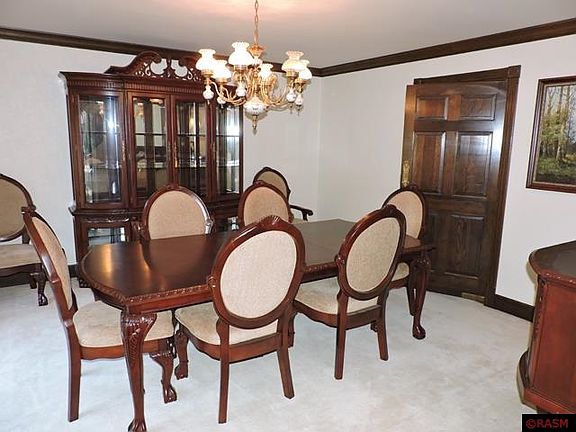 Truly one of a kind home on a ravine lot in upper North Mankato. This property has been painstakingly cared for and truly treasured by the owner. Each room is finished with a classical "old money" feel, and all the woodwork in the home was hand-carved by the owner. The two story foyer is graced with a crystal chandelier and a grand staircase leads to the upper level. The remainder of the main level is comprised of a living room with a gas fireplace and pocket doors, formal dining room with pocket and butler doors, an office with French doors to the sunken sun room, kitchen, informal dining room with built-in office space, and a laundry/mud room. The upper level is comprised of the master suite with its own private fireplace, a custom built bed, and large walk-in closet/dressing room with 3/4 bathroom, and 3 additional bedrooms and a full bathroom complete the level. The basement has been finished to include a bar area, 1/2 bathroom, large family room with wood burning fireplace and enormous workshop with access door to garage. If that isn't enough... there is a full walk-up attic too!. The grand yard is complimented in the back with an enormous two tier patio overlooking the ravine and separate deck spaces. Completing the property is a 4 stall garage. There isn't another home in Mankato or North Mankato like this one...be the lucky one who gets to own it!