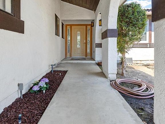 Check out this move in ready home in North Hanford WITH a pool. This home is situated on a 8500+ sq ft lot. Walking into this home you will notice tiles and laminate flooring throughout which was all done in the past 5 years. Walking into this home you will find your living room with built in shelving as well as a cozy fireplace. The living room overlooks the beautiful pool in the backyard. The living room has an arched entrance that matches the Spanish exterior that leads to your large eat in dining space. The kitchen offers a breakfast bar and a stainless stove and dishwasher. Down the hall you will find the guest bathroom with a walk-in shower and you two guest bedrooms. At the end of the hall you will find your master suite the bathroom offers a tub/shower combo as well as dual sinks. Home also features an indoor laundry room. In the backyard you will find the large swimming pool that has been resurfaced in the past 5 years. This home is immaculate inside and out. Also, newer windows and AC/heater.