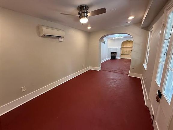 A Taste of the French Quarter: Modern Living with Historic Charm Step into this beautifully updated 1-bedroom condo on historic Royal Street, where the timeless charm of the French Quarter meets modern convenience. Located just a block from the vibrant energy of Bourbon Street, this unit offers the perfect blend of quiet retreat and city excitement. Inside, you'll find a sleek, modern kitchen with white cabinetry, stainless steel appliances, and elegant marble-style flooring that flows throughout. The spacious living area features a unique fireplace mantel and a striking red floor, creating a warm and inviting atmosphere. The unit also includes a mini-split AC system for personalized climate control. The building itself exudes classic New Orleans character, with a charming courtyard perfect for relaxing and enjoying the outdoors. The iconic street-facing balcony, a hallmark of French Quarter architecture, adds to the quintessential New Orleans experience.