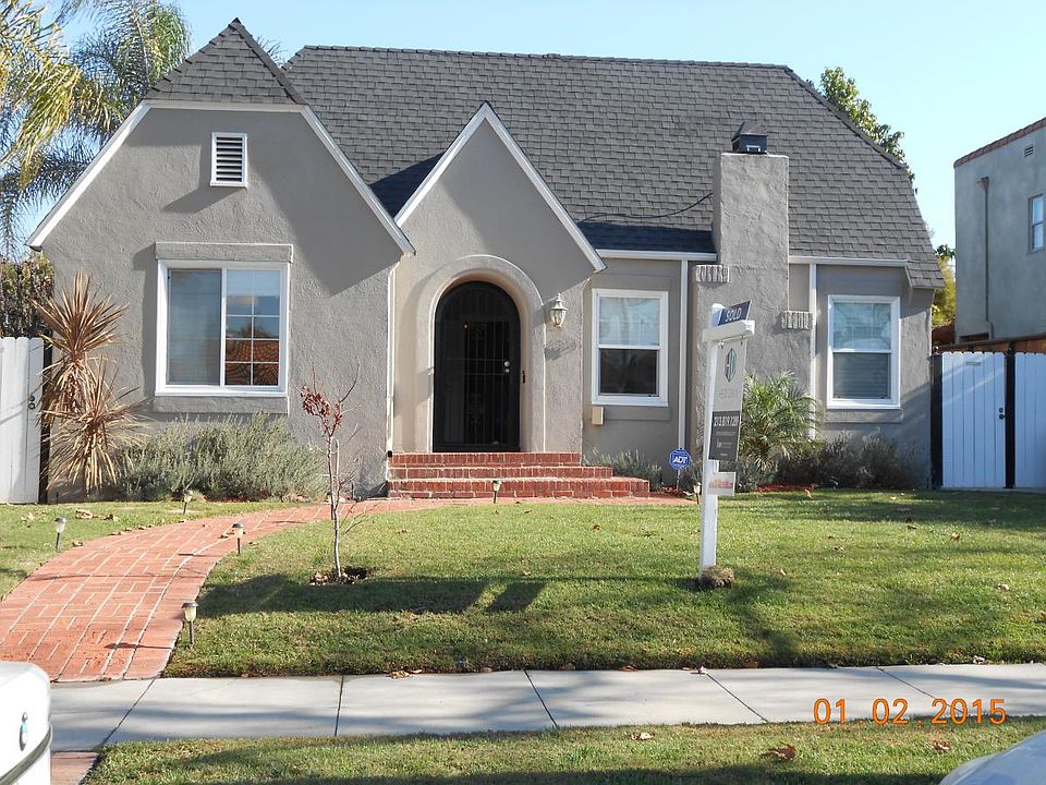 Fabulous home in Miracle Mile district and near THE GROVE. 3 Bdrm, 2 Bath, Paved patio and grass backyard.. New Gas Burning Fireplace and newly refinished hardwood floors, bedrooms have carpeting. Separate Laundry room with Washer/Dryer. Cozy Large Family room with Wood Beams and French Doors. Sprawling yard fenced for privacy. This warm, well maintained residence has all you need! Bedrooms have ceiling fans. Security Lights included, as is Gardner once a week. Freshly painted all white except pale yellow painted kitchen. Refrigerator, stove, microwave and dishwasher. Landlord/owner pays for weekly Gardner Service.
