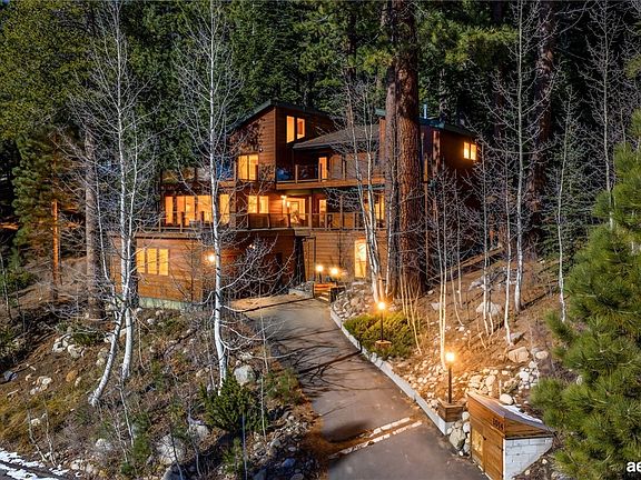 Tucked at the end of a quiet cul-de-sac and wrapped in Aspens, this Incline Village retreat offers privacy and a front-row seat to Lake Tahoe. Bordered on three sides by U.S. Forest Service land, it feels worlds away yet lives comfortably. Inside, large picture windows frame expansive lake and mountain views. The main level features an open layout where the kitchen, living, and dining areas flow together, opening to a generous lakeview deck ideal for morning coffee, sunset dinners, and easy entertaining. Two additional decks on the mountain side of the home invite you into a forest setting. The upper level is home to a primary suite with sweeping lake views and a large private deck. Two guest suites, each with an ensuite bath, offer privacy for family and friends. On the lower level, a flexible bonus room is sized for billiards, media, or a game room. With its blend of views, forested privacy, and multiple outdoor living areas, this property lives like a Tahoe escape.