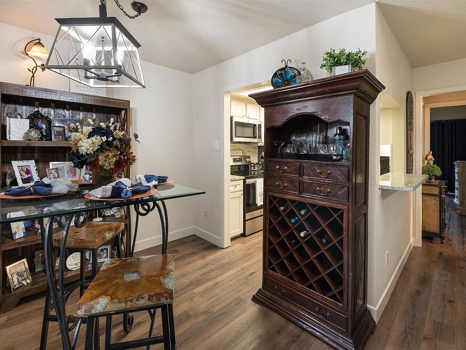 Completely remodeled condo. High Quality Luxury Vinyl Plank Flooring w-sound barrier only carpet on quant circle staircase. Kitchen remodel: new cabinets, new hardware, granite, sink, faucet, stainless steel appliances, disposal, plumbing and pantry. Light Fixtures, Safety on hot water heater. NEW HVAC inside and out. Master is down w-spa like bath; dual sinks, granite, double shower w-stone and tile, frameless glass, cabinet above toilet, linen closet, custom closet-new rods, custom shoe racks. Upstairs offers; Bedroom w-break up office, full bathroom, granite, new faucet and hardware. Cabinet above toilet. Two HUGE closets. Patio off of master bedroom and living-dining area, storage closet on back patio. Special blinds on front door for privacy, fresh paint on front door and patios. Two parking places. Close to the Harbor and Theatre. Roll down sun screens on the back patio. Stackable washer, dryer, drapes convey.