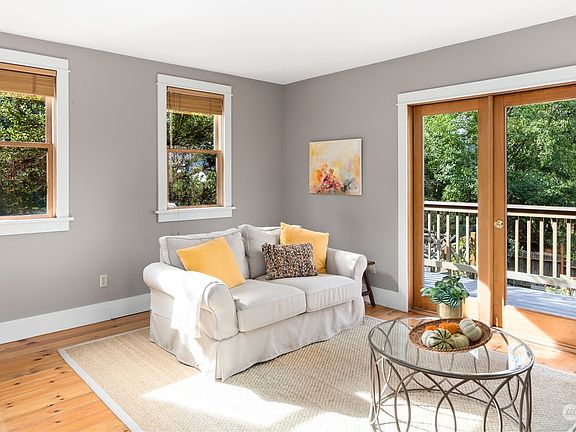Embrace the magic! Non-through U Street & Fort Worden are just the beginning. Authentic New England Salt-Box design home, meets modern environmental efficiencies like symmetrically placed windows for cooling, cross ventilation & centered fireplaces for whole house warmth. Wood floors & wood wrapped windows throughout, natural light abounds. 3 Rumford FP, 1 gas and Russian FP in the walk-out full size basement, part-finished studio w/storage of 1006 sf. The Juliet balcony off the livingroom looks out to the 50x100' landscaped garden w/135 different species of gorgeous plantings and 9x12' shed, the"guest deck" is a great summer feature in the gardens as well. Farm style kitchen/breakfast area, formal dining, spacious Primary bedroom upstairs.
