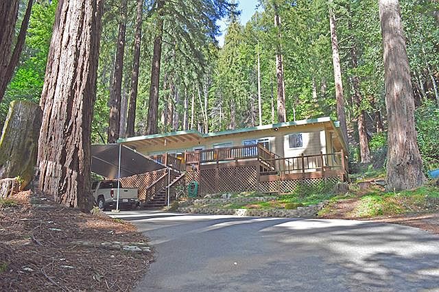 Top of the world! Surrounded by nature, yet minutes to downtown Ben Lomond and Felton. This home features three full bedrooms, two full baths and multiple living areas nicely mapped out in a easy feel, single level floor plan. Master suite has natural light, high ceilings, a private bathroom and walk in closet. Spacious room and loft in second bedroom. Third bedroom is more private around the corner of the kitchen and utility with full bath near. Separate, light filled office space, utility room and dining/family room. Newer roofs, floors and windows. Plenty of parking, huge carport stays. 2 large sheds, plenty of forest to play! Really friendly neighborhood, everyone is spread out nicely for privacy. Perfect mix of sun and shade. Nicely groomed grounds.