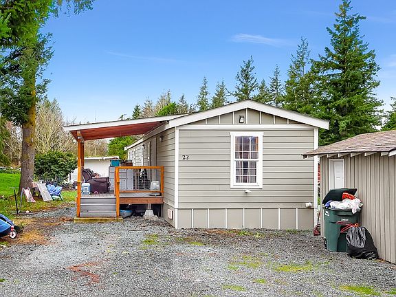 Welcome home to this fully updated 2-bed, 2-bath manufactured home with central A/C & a spacious primary bathroom. Offering 924 square feet of modern living, this home features an open-concept kitchen & living room with bright, airy spaces & durable vinyl plank flooring throughout. Completely remodeled just 2 years ago, it boasts brand-new Trex decking in the front & back, perfect for low-maintenance outdoor living. The large backyard has room to relax or play, fruit trees, plus a spacious shed for extra storage. With ample parking & all appliances included, this home is truly move-in ready. Conveniently located between Bellingham & Ferndale in a no-age-restriction park, you’ll enjoy easy access to shopping, dining, & outdoor adventures.