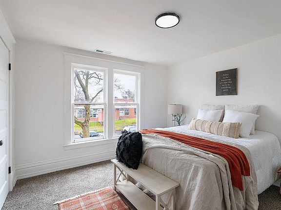 Clean neutral stylingBright and functional kitchenGreat natural lightUpdated finishesShared yard accessSpacious bedroomVintage charm