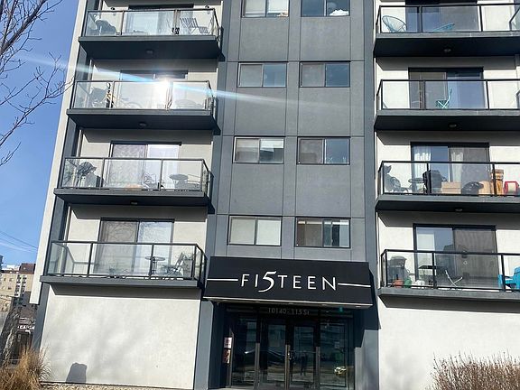 Welcome to The Fifteen! Located on the second level, just off Jasper Ave & blocks away from the BREWERY & ICE DISTRICT! Prime location, residents easy access to superb shopping, dining, the University of Alberta & Grant MacEwan. This sleek unit boasts a modern design with pristine white tile floors, white kitchen featuring Quartz countertops, eating bar, & stainless steel appliances. The spacious layout includes a bright living room, dining area, dedicated office space, convenient in-suite laundry facilities, and an impressive 4-piece marble bathroom equipped with a high-end multi-body spray nozzle shower and luxurious soaker tub. The master bedroom features a walk-in closet for added convenience. Complete with air conditioning, a parking stall, and a covered patio, this unit offers both comfort and functionality. Residents of this well-managed building also enjoy access to top-floor amenities including an exercise/yoga area and a rooftop deck boasting breathtaking 360-degree views of downtown/Oliver.