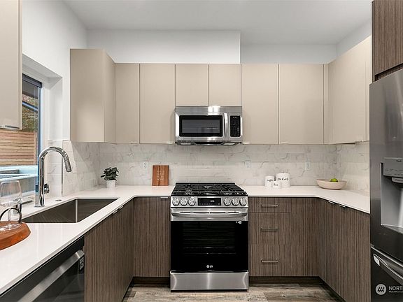 LAST HOME! 2 Bedroom Home in Seattle with PRIVATE PARKING for under $600K! This is the best price in the entire community and is the final home for sale! Window-lined exteriors give way to refreshing cloud-like walls anchored by warm charcoal-toned hardwoods. Kitchens provide maximum efficiency w/ minimalistic finishes that capture a sense of enveloping luxury, including expertly designed living & dining areas. Each suite enjoys private access to spa-like bathrooms and laundry rooms. Generously sized roof decks are perfect for relaxation, backed by sweeping views of Seattle and the Cascade mountains. Don't miss out on this final opportunity - now is you're chance to get into the coveted Greenwood neighborhood at a fantastic price!