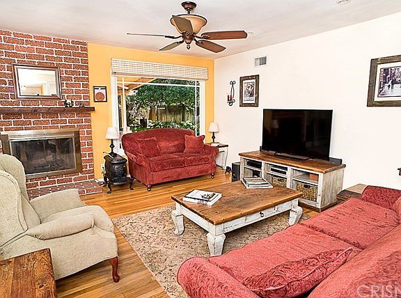 Situated on a quiet street in a family friendly neighborhood this charming ranch style home features handsome curb appeal, four bedrooms, two bathrooms, 1489 square feet of living space, hardwood floors, a three car detached garage and a private backyard with a gorgeous Oak tree. The welcoming brick front porch invites you into a spacious floor plan featuring an updated kitchen with loads of maple cabinets, clean laminate tops, a ceiling fan, a gas range/oven, a dishwasher and a dining area with ceiling fan. There is an indoor laundry room with linoleum floors and storage cabinet. The spacious living room offers hardwood floors, a huge picture window overlooking the backyard, ceiling fan, recessed lights and a brick fireplace. The large master bedroom offers ample closet space with mirrored closet doors, a ceiling fan and hardwood floors. The three additional family bedrooms are carpeted, offer ample closet space and fourth bedroom converted to den with closet built-in. The full bathroom features a tile vanity, tile floors and shower over tub. The second bathroom boasts a vanity with over sized medicine cabinet, tile floors and a stall shower. The amazing backyard features a magnificent Oak tree, a relaxing covered brick patio with ceiling fans & BBQ area, a large grassy area, secured with wood fencing, a three car garage with roll up garage doors, an auto door opener, storage and a large cement driveway. Close to convenient freeway access, local shopping and schools.