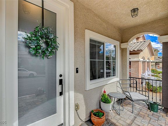 Welcome to this beautiful single-family home located in a gated N.W. Las Vegas neighborhood. This home, painted in 2023 includes a new front door that enters to a separate living room featuring beautiful diagonal set rectangular tile flooring throughout the first floor. The family room connects to the dining area and gourmet kitchen which includes a built-in KitchenAid refrigerator, 42-inch shaker cabinets w/crown molding, a tile backsplash and premium Bosch appliances and R.O. A finished laundry room includes a newer washer and dryer, cabinets. 4 bedrooms w/ new ceiling fans are on the 2nd floor w/ an oversized loft and built-in wall unit. The primary bedroom is separate from the others; it includes a totally renovated bath w/ a wall to wall tile and floor to ceiling glass shower w/ double shower heads w/ new cabinets and faucets. The home features a whole house water softener, tankless water heater. Professionally finished, landscaped backyard, gas b-que stub, pavers, turf,side gate.