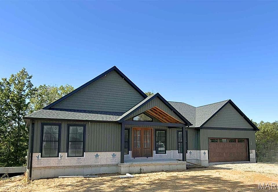 Nestled just outside of Terre Du Lac lake community, this newly constructed home sits on a quiet private drive with almost 2 wooded acres. Inside you will find vaulted ceilings with an open floor plan perfect for hosting this holiday season. The home builder collaborated with a designer to curate a custom kitchen that brings a modern esthetic to its rural setting. The layout features a Primary bedroom with ensuite on the left side of the home and an additional Primary bedroom with ensuite on the right side, along with an additional 3rd bedroom. If that isn't enough space for you, the basement was designed with large picture windows letting the natural light flow in with a great view of your backyard. The lower level walks out to the covered patio facing your 1.8 acres of wooded land. From the ground level, you have access to a staircase leading up to the large main level covered deck. This build is in its final stages of competition and will be ready just in time to be yours for the holidays!