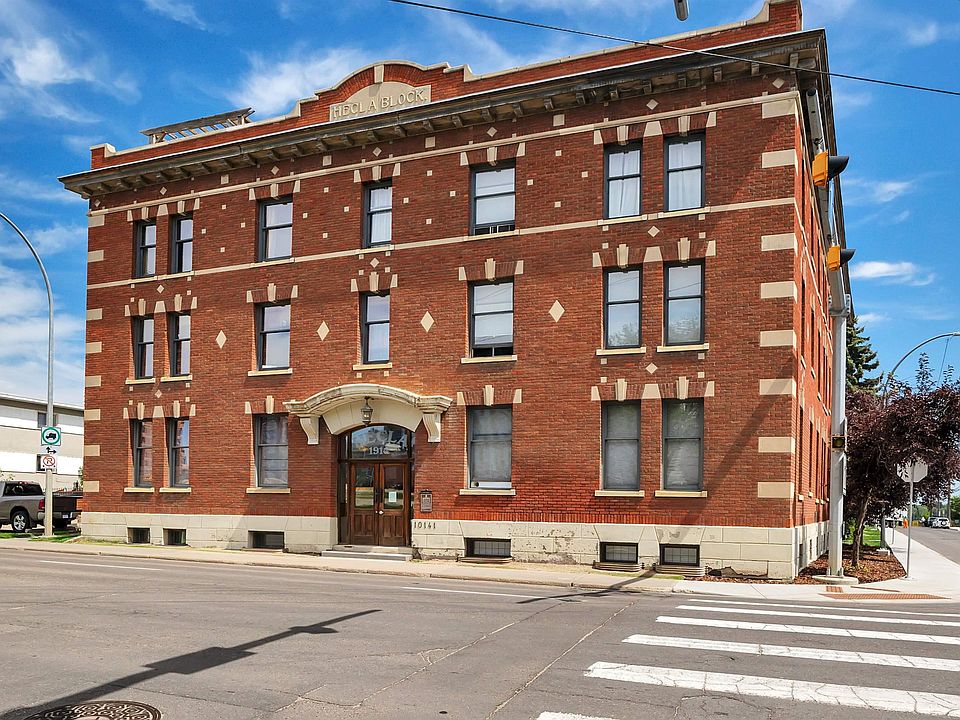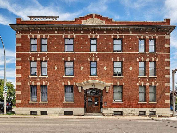 Welcome to one of Edmonton’s finest heritage-designated apartment buildings. Perched above Riverdale and just minutes from Downtown, the Hecla has stood proudly for over a century, offering timeless character and a unique link to the city’s past This standout 720 sq ft open-concept loft blends the warmth of exposed brick walls and soaring 10 ft ceilings blends with thoughtful modern updates. The kitchen is a showstopper with double-height maple cabinetry, granite countertops, a central dining island. The large bathroom offers a deep soaker tub, classic subway tiles, Kohler fixtures, and hidden mechanical room. The Hecla Block isn’t just a building — it’s a lifestyle. Owners enjoy a serene courtyard with pond and an incredible rooftop patio boasting panoramic Downtown views, perfect for morning coffees or summer evenings. The River Valley and Downtown are just steps from your door. Built to last, discover why the Hecla Block continues to captivate homeowners over 100 years later.