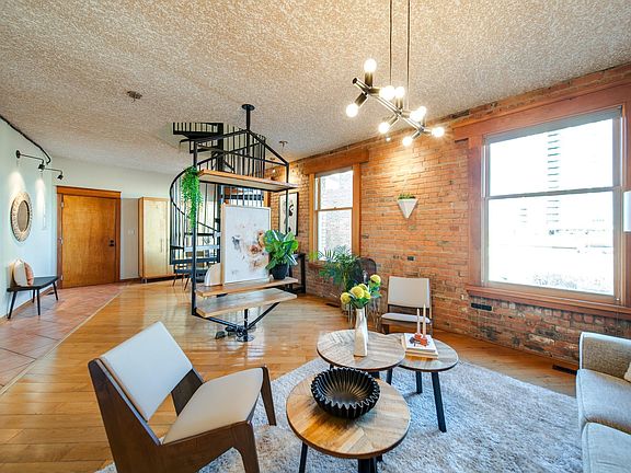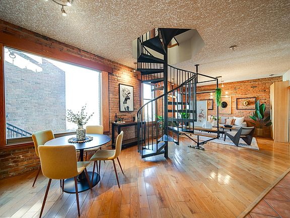 Hecla Lofts! A charming heritage walk-up with only 14 units, offering an authentic loft experience in the heart of downtown. This 3rd-floor open-concept loft/penthouse conversion is the premier unit in the building and showcases exposed brick, unique character, and a striking spiral staircase leading to your private rooftop patio. Enjoy over 500 sq. ft. of exclusive outdoor space with incredible river valley and downtown views—perfect for entertaining on warm summer nights or relaxing in your own private hot tub. Inside, the home features a blend of hardwood and ceramic tile flooring, stainless steel appliances with a built-in microwave, in-suite laundry, and large windows fitted with Shade-O-Matic blinds. The space is wired for surround sound and offers ample art and picture lighting to highlight the loft’s charm. Additional storage is available in the basement. The building is Airbnb friendly, and you’re steps to downtown, the river valley, restaurants, nightlife, and more. A truly unique property!