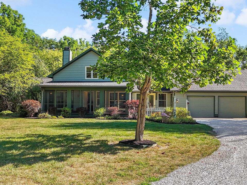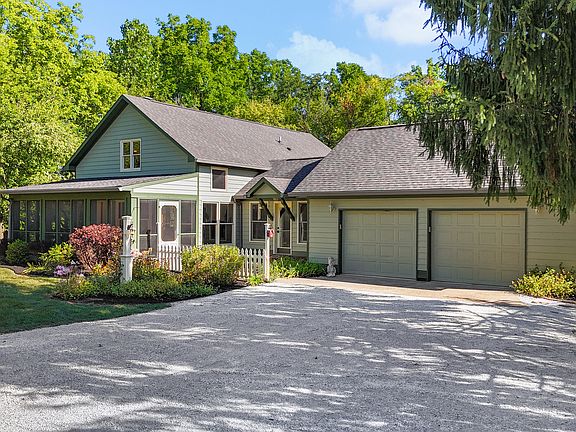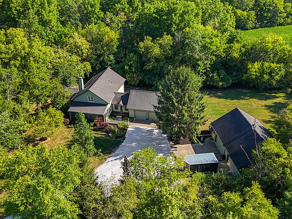 Discover this stunning 5-acre property featuring a one-owner home with over 3,500 sq ft of living space. This charming residence includes 3 bedrooms, 2.5 baths, a sunroom, a screened porch, and a beautiful wraparound deck with a gazebo. Step into the welcoming living area, which boasts impressive 25-foot vaulted ceilings with wood beams and an abundance of windows that provide a breathtaking 180-degree view of the surrounding nature, allowing natural light to flood the space. The home has been updated with a brand-new kitchen and bathrooms, and the finished basement includes a hidden passage to the garage. Enjoy the eco-friendly benefits of geothermal heating and cooling, along with wide walking trails that lead into the woods. The master suite is a true retreat, featuring dual closets plus a extra shoe closet, built-in storage, and a vaulted ceiling. French doors open to a private balcony with picturesque views of the woods and wildlife. The master bathroom is a luxurious haven, equipped with a large soaking tub, dual vanities, and a spacious walk-in tile shower. In addition to the extra-deep, heated, and air-conditioned 2-car garage, you'll find a fantastic 1500 sq ft Garage/ outbuilding/workshop. This versatile space includes 2 double door access, built-in cabinets, an oversized loft, and ample windows, all fully heated and cooled for your comfort. This property is a perfect blend of elegance and practicality, offering an unparalleled living experience amidst nature's beauty.