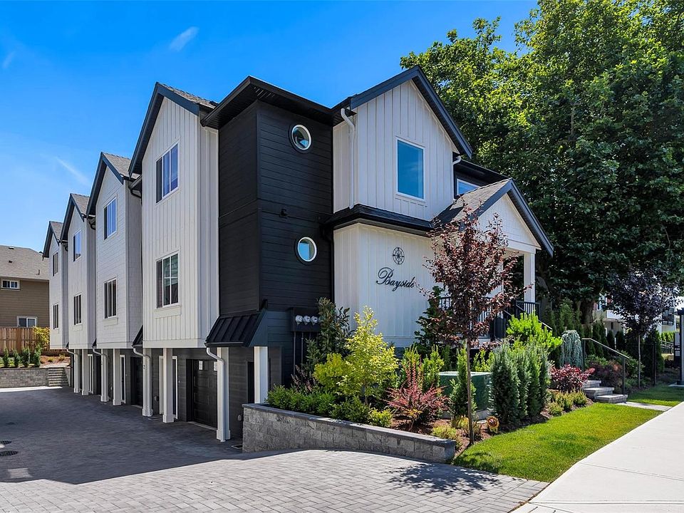 OPEN HOUSE Saturday 1-3PM. Proud to present The Bayside Towns on Fifth - a curated collection of 16 townhomes in Sidney's most desirable neighbourhoods, ROBERT'S BAY. Offering a modern farmhouse aesthetic & varied layouts appealing to young families through to active retirees. This larger floor plan offers 3 spacious bedrooms on the upper level including the primary with ensuite. 4th bedroom or office located on the lower level with its own 3 pce bath. Light wide-plank hardwood throughout entry and main level plus large picture windows that will keep the home light & bright. Custom white kitchen cabinets with quartz counters, generous island & stainless appliances. Efficient heat pump for year round heating and cooling. In-floor heat in all tiled bathrooms. Interlocking brick, fully fenced southeast facing patio with irrigation. Close to beaches, trails and easy walk to Beacon Ave, this is a 12/10 location! ALL AVAILABLE HOMES NOW HAVE OCCUPANCY & GST INCLUDED IN PURCHASE PRICE!