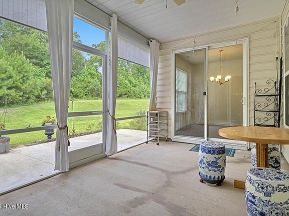 The main-level primary suite is a true retreat, complete with cathedral ceilings, direct access to the screened-in porch, a large walk-in closet, and a spacious en-suite bath featuring a dual vanity, walk-in shower, tile flooring, and generous storage including a full-size and linen closet.