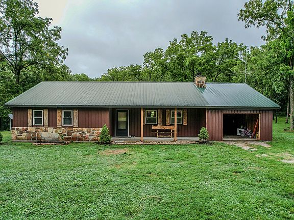 The perfect property to have a private and secluded hobby farm with a great mix of pasture and woods. This two bed two bath home sits just far enough off the road for seclusion making it a park like setting! Beautiful vaulted tin ceilings throughout the main living area with an open floor plan with a wood burning fireplace fireplace. Nice size kitchen with plenty of cabinets for storage, counters for prep space and an island for seating. The main bathroom has been recently updated with a new tiled walk in shower, single vanity and storage space. Down at the end of the hall is the master bedroom with an attached bathroom that has a tiled shower and single vanity. The second bedrooms is HUGE with plenty of closet space. There is also a laundry and mud room off the kitchen that leads to the 1 car attached garage. Out back of the home is a covered back deck to enjoy the farm animals and wildlife. The property is completely perimeter fenced and has some cross fencing. There is a detached two car pole barn at the front of the property along with a gated entrance. With 10 acres to roam off blacktop frontage this is a great property if your looking for land!