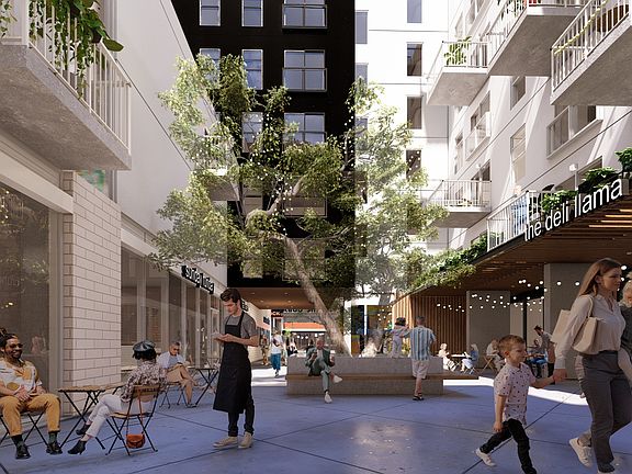 - Landscaped communal courtyard designed for connection and calm, seamlessly extending into the ground-floor retail experience for an active, social atmosphere