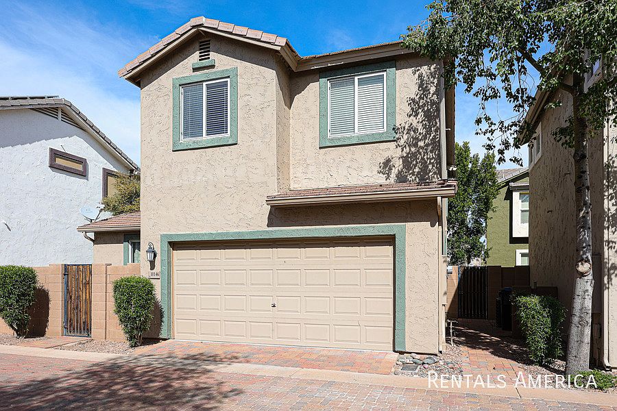 This beautiful two-story home is located in a community with tree-lined streets and a playground & community pool within walking distance. Downstairs, you will walk in a bright, open-concept space with hardwood laminate flooring and two-tone paint in the living & dining rooms. The spacious kitchen includes slab granite countertops, a large island, recessed lighting, black appliances, pantry & loads of counter and cabinet space. There is a powder room downstairs and access to the 2-car garage. Upstairs, you will find the Master Bedroom complete with a bathroom with dual sinks & a walk-in closet. The two additional bedrooms are spacious. The second bathroom and laundry room are also located upstairs. There is an enclosed rear patio with pavers. Only 1 dog under 40 lbs. allowed; sorry no cats. *One Time Admin Fee: $300, Pet Deposit $300 per pet (If applicable) Municipal Tax: 2%, Service Fee: 2%. Resident Benefits Package: $39/month. Helping Heroes Discount Available! *MOVE IN SPECIAL $1000 OFF FIRST MONTH'S RENT ON 13 MONTH LEASE* Carpet Community Pool Dryer Garage Washer