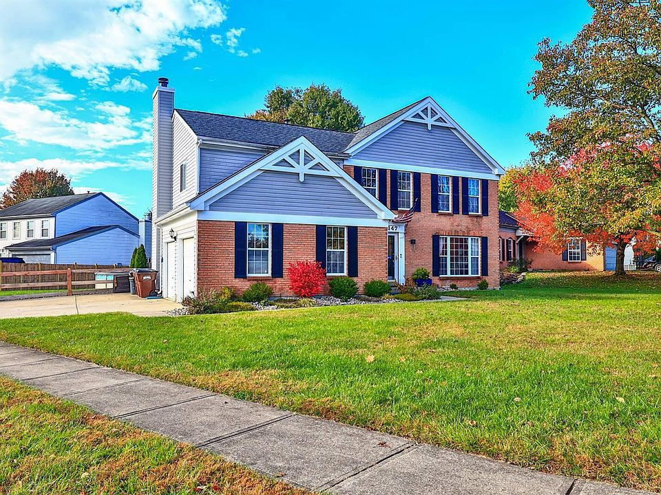 Well-appointed 4 bedroom 2-story boasting private fenced rear yard & 3 finished levels! 2 car side entry garage, brick front, multi-gabled roofline, & mature landscaping. Updated lighting, fresh paint, & modernized neutral décor. High end luxury vinyl plank flooring throughout the entire main level. Open foyer w/ soaring ceilings, closet, & convenient 1/2 bath. Living room offers decorative electric freestanding fireplace w/ built ins. Formal dining room has a recessed ceiling and adjoins the kitchen. Fully equipped kitchen includes newer SS appliances, attached breakfast room w/ bay window, & pantry. 1st floor family room equipped with a marble surround gas fireplace, LED recessed lighting, & walkout to the rear deck. Vacation at home in this well-manicured fenced rear yard featuring an over sized deck, pool, firepit, & shed. Primary suite has cathedral ceilings w/ fan, walk in closet, & private bath w/ double vanity. Sought after 2nd floor laundry room, 3 additional bedrooms, & 2nd full bath upstairs. Finished lower level rec room w/ new carpet, freestanding bar & shelving, plus recessed lighting. Great location close to shopping, restaurants, & interstate. Ryle school district.