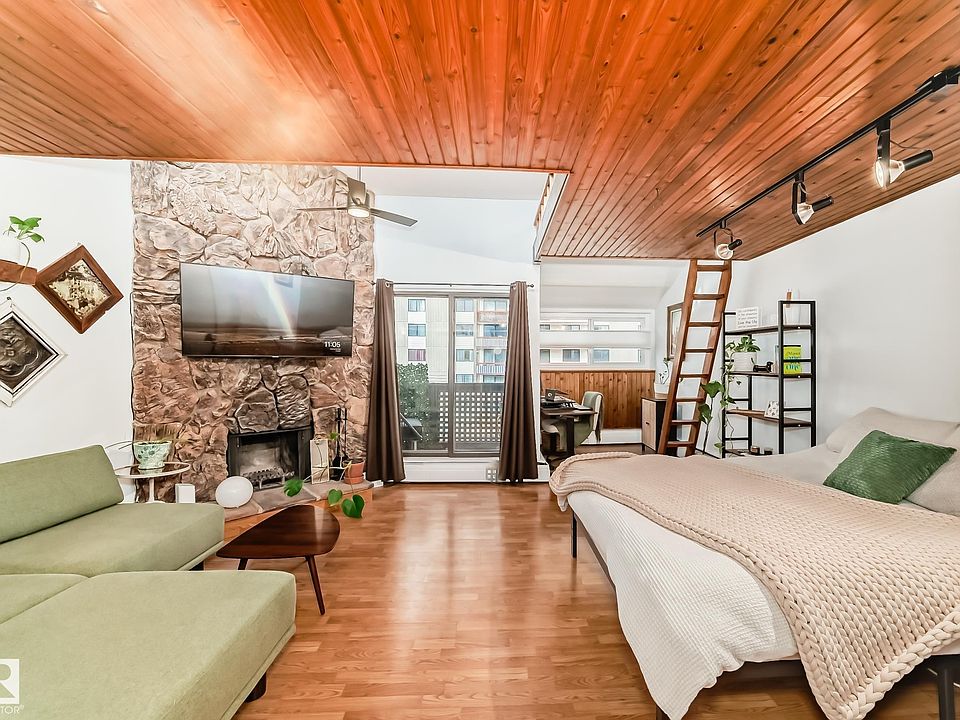 Welcome to The Solarium, a well-kept building in the heart of Wîhkwêntôwin that perfectly blends comfort, style & convenience. This bright & airy unit features a unique loft space that adds character & flexibility to your living area. Enjoy cozy nights by the wood-burning fireplace or soak up the sunshine in the alcove, ideal for a home office or a reading nook.The kitchen features a new backsplash, countertops, built-in dishwasher, and fridge, while laminate flooring throughout gives the home a sleek, updated feel. You’ll also appreciate the convenience of in-suite laundry & a fully renovated bathroom. Additional features include a storage locker on the same floor. The building offers an elevator for easy move-ins and is quiet, well-established building w/Low condo fees under $500 add exceptional value. Step outside & you’re just minutes from Jasper Avenue's vibrant shops, restaurants, & entertainment. Experience the best of downtown living and make The Solarium your new urban retreat.