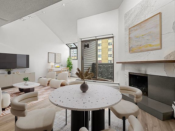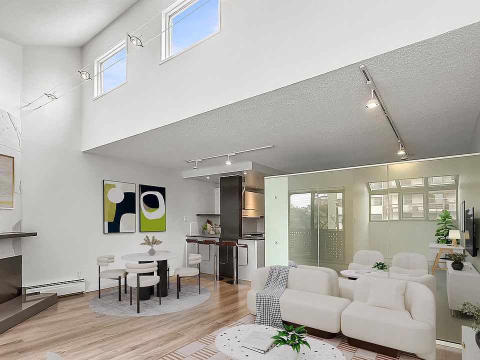 Welcome to this stunning TOP FLOOR unit it the highly desirable Solarium building! This FULLY RENOVATED property impresses everywhere you look! As you enter, one of the first things you will notice is the abundance of NATURAL LIGHT. This OPEN CONCEPT floor plan is complete with a GOURMET KITCHEN, dining area, WOOD BURNING FIREPLACE, large living room and dreamy flex space. In suite LAUNDRY, storage, built in cabinets, VAULTED ceiling, AIR CONDITIONING, and parkade parking are just some of the features making this unit an RARE find.