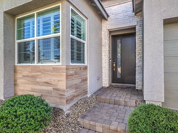 Stunning Toll Brothers home in gated Montrose community*Better than NEW, & available NOW*10 foot ceilings & 8 foot doors throughout*12x24 Tile Flooring & Upgraded Carpet in bedrooms*Beautiful Kitchen includes Blanco Levanto QUARTZ counters & matching solid Backsplash, 42' WHITE dovetail cabinets w/soft close & roll out drawers, Upgraded KitchenAid appliances, Pantry*Shutters throughout*Kitchen, Nook & Family room flow to make a GREATROOM*Dining room is separate*DEN features French Doors*Bedroom 3 offers an ENSUITE (Private Bath)*Oversized Primary bathroom has a barn-door into bath, Double sinks & spacious shower w/bench & niche*SMART Home*Cameras at exterior*3 HVAC zones*Personal drop-box* Fire Sprinklers*3 car garage w/EPOXY floors, tankless water heater, EV Charger & water conditioner*Extended Pergola, Covered Patio & PAVERS, Turf, Trees & Shrubs*Skye Canyon offers Community POOL, Fitness Center, Parks & Activities for the whole family*Close proximity to freeways, shopping & dining