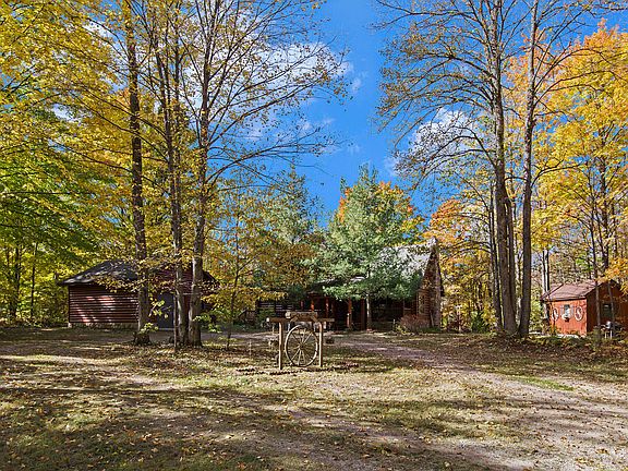 Nestled at 10149 Tittabawassee Trail in Gaylord, MI, this custom log home crafted in 2003 exudes timeless charm and impeccable craftsmanship. Meticulously maintained with unwavering integrity, this sanctuary boasts three bedrooms and two-and-a-half bathrooms spread across a full basement. Step into the warmth of a cozy retreat where nature's beauty dances through every window. A charming small pond on the property alongside a quaint cabin-like shed that adds to the allure of this tranquil setting.Embrace the enchantment of 10 sprawling acres within Wilderness Valley Association as you arrive via a convenient turn-around driveway. Practicality meets peace of mind with an automatic generator ensuring comfort even in unexpected moments. Unwind in your spacious 24 x 24 garage after exploring the vast outdoor playground surrounding your haven. Whether it's starlit nights or sun-kissed mornings, every moment spent here is an invitation to savor life's simple pleasures amidst pure natural splendor.