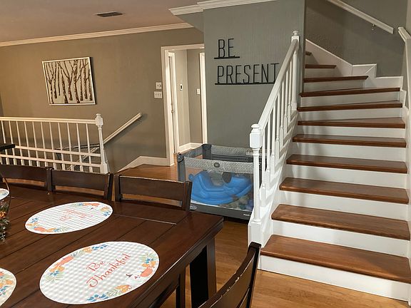 Elevated full length back porch balcony off middle floor. 3 bedrooms upstairs and 1 bedroom downstairs on ground floor. Kitchen, den, laundry room and half bath on middle floor. Large storage areas and downstairs den make it a great kids house