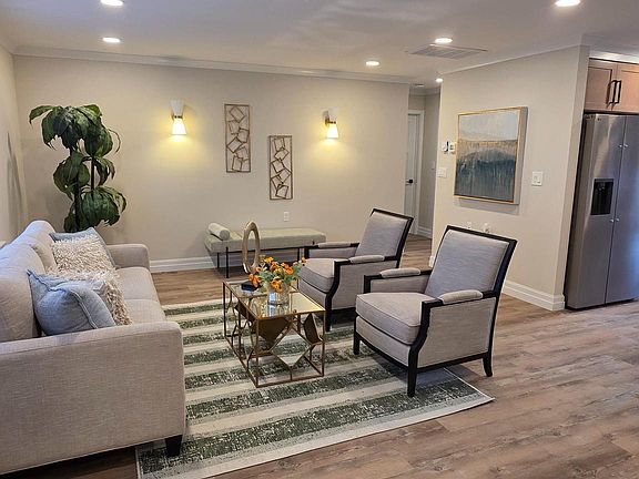 Gorgeous fully remodeled baronet ranch end unit with plenty of privacy. NEW NEW NEW kitchen cabinets, quartz counters and backsplash, ss refrigerator, stove, dishwasher, built in microwave, luxury vinyl floors and recessed lighting throughout home, hot water heater, central a/c unit, beautiful porch with wraparound windows to relax and enjoy the outdoors, closets with shelving, garage door opener, walk in shower with bench, 4 ft vanity, elongated higher toilet, beautiful ceramic tile walls. All NEW! Also comes with washer and dryer. Come see it today!