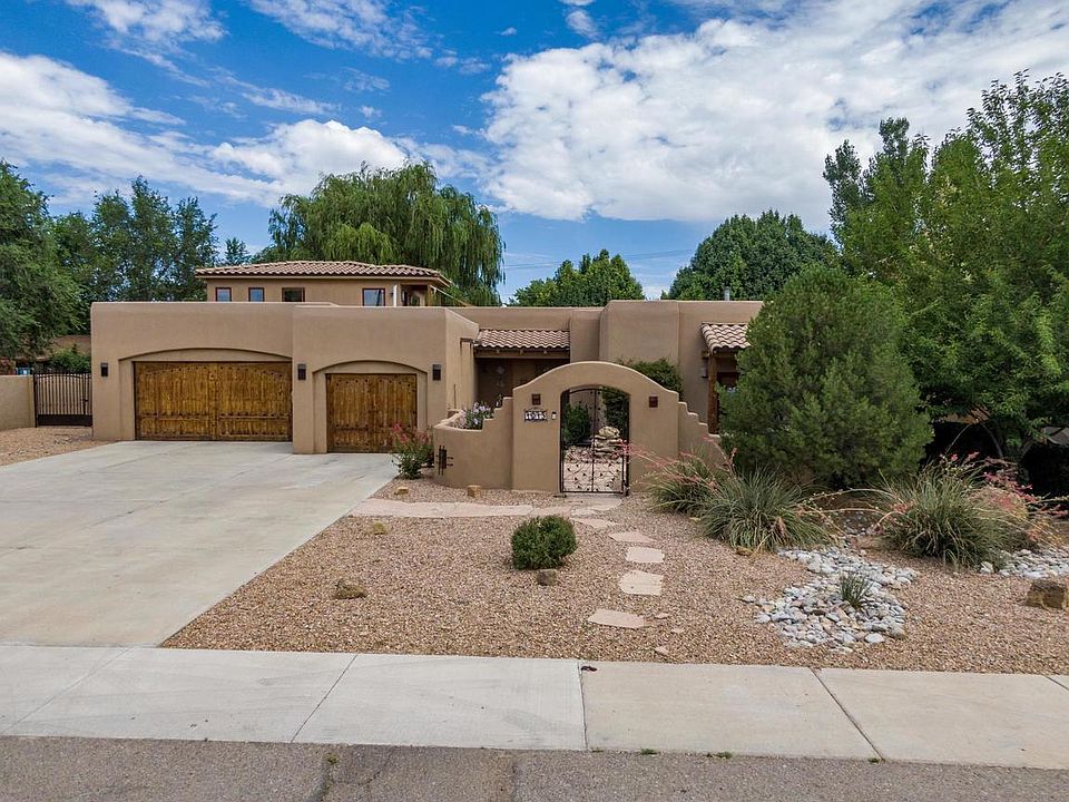 Gorgeous, elegant yet homey 5BR house near Los Poblanos fields. Wonderful field in front of house. Best of the North Valley & Los Ranchos ambience! Front courtyard is welcoming with roses & lavender & honeysuckle. Step into the front door & see out to another courtyard that has brick floors and has windows & French doors on 3 sides to let in the light! Beautiful living room with fireplace and huge dining room. Spectacular kitchen with amazing Dacor dual-fuel 6 burner stove. Huge center island with 2nd sink for lots of room for the fussiest chef! Butlers pantry as well as a big walk-in pantry. Fabulous house! Never pay large electric bills again! Solar panels are owned & awesome! New foam & silicone roof to go on in middle of August -- Never worry about flat roof issues!! Call today!