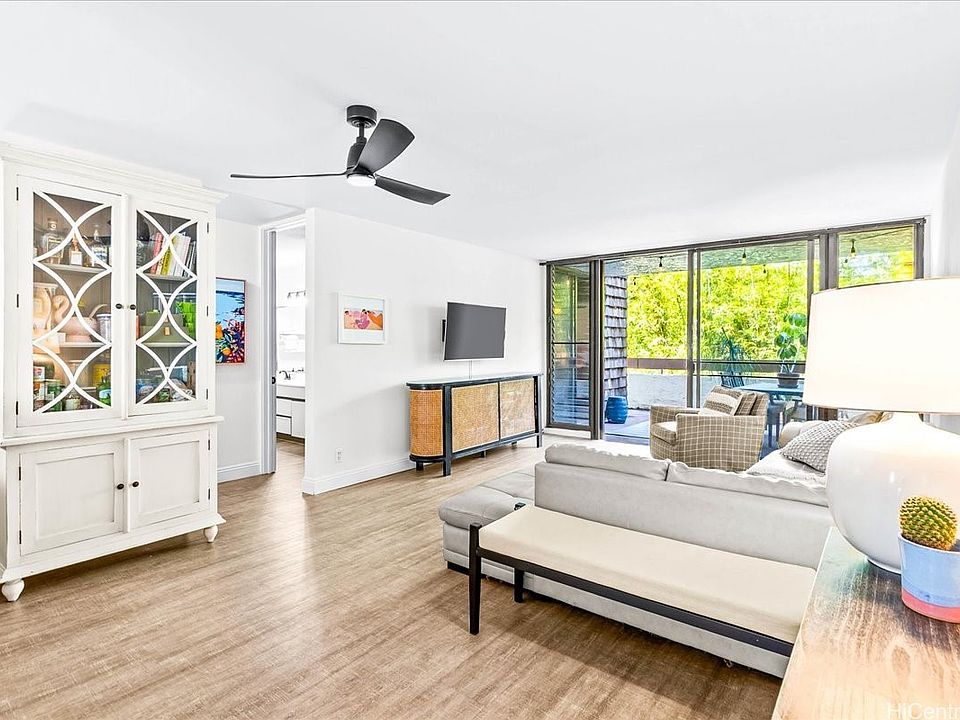 This beautifully updated 2-bedroom, 2-bathroom condo comes with 2 side-by-side, covered parking stalls and a storage unit, offering both comfort and convenience in the heart of Kailua. The home features an oversized 266 sq ft lanai overlooking lush green space and gardens—perfect for relaxing or entertaining.