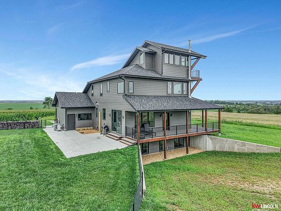 Once-in-a-Lifetime Custom Build on 5 Acres–Just Outside Lincoln! Welcome to a truly rare and remarkable property—a Rezac custom-built home perched on 5 acres offering unmatched panoramic views. Thoughtfully designed with unique features at every turn, this one-of-a-kind residence includes a 3rd-floor watchtower with 360° sightlines for miles. The main level boasts a huge eat-in kitchen with top-tier finishes. Upstairs, a private guest suite includes a walk-in closet and ¾ bath, while the primary suite impresses with windows on all sides, a luxurious soaker tub, walk-in shower with multiple heads, and a massive closet. Step onto the rooftop deck for sunrise coffee or sunset wine. The finished basement offers a second living room, two spacious bedrooms with Jack-and-Jill bath, a dedicated office or flex space, laundry, and a storm shelter. Outside, there’s endless room for a pool, outbuilding, or whatever hobbies you dream up. This is more than a home—it’s a destination. Don't miss out!!