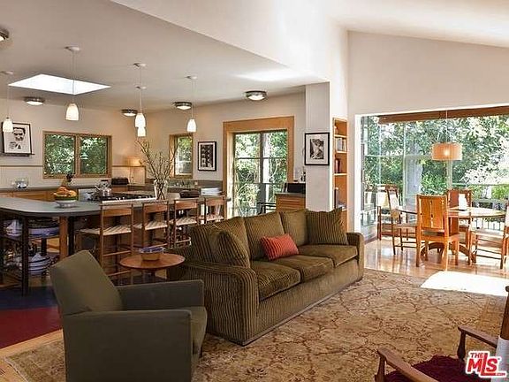 Private and gated 3 structure compound up long drive on over an acre flat of lush grounds in an A+ location. The main residence is a 1920s Spanish remodel with modern influences and offers 4 bedrooms and 4 bathrooms, gourmet kitchen, large scale living room, outdoor living room with fireplace off pool and grassy yard plus a playroom and/or office w/ separate entrance. Second structure was built as an office/media room and/or guest house with a drought tolerant green roof. Third structure is a 1920s one bedroom guest house with living room and kitchen. Quintessential casual California living at its best.