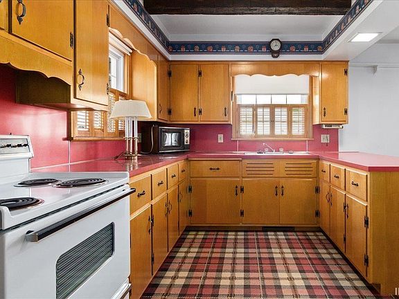 Step back in time with this nostalgic 1954 Stone ranch home, offering timeless charm. From the Breezeway to the retro kitchen, this home Features 3 bedrooms and 2 full baths. This one of a kind residence includes a one-car garage for you convenience. Inside, you'll find all the furniture is included but sellers are willing to remove it. The large living room has a full wall of stone with a gas log fireplace. The basement has a curved brick fireplace and a bar with lots of sitting space. Patio area off the breezeway provides outdoor Embrace the character this home invites as you enjoy the simpler era.
