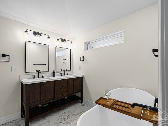 Nestled in the heart of East Hill, this completely updated craftsman has all of the luxuries desired in today's modern homes while still offering the feel of old world charm! Adorned by a wrap around porch with perfect views of Cordova Square park, hot tub outside off the main bedroom and a fully fenced back yard, this home IS the epitome of Florida outdoor living. As you enter the home you will immediately notice the 10’ high ceilings, built-in bookshelves, well appointed open living space with an electric fireplace, perfect for enjoying cozy nights together. The kitchen has been meticulously designed to provide maximum functionality with timeless elegance. Soft close cabinetry, built-in wine rack, quartz countertops, stainless steel appliances, gas cooktop w pasta arm, wall oven and built in microwave and direct access to the dining area make this an entertainer's delight. The generously sized main bedroom is the perfect retreat at the end of each day with a sliding door leading out to the covered hot tub sunken into the back deck. The spa-like en suite is complete with double vanity, soaking tub, tiled walk in shower and double closets. The two additional bedrooms are decently sized, with the front most room adorning an electric fireplace. These rooms share a full guest bath that also feature beautiful updates such as tub to ceiling tile and soft close cabinetry! This gorgeous home is located within walking distance to Publix, Lamonte Gelato, O'Zone Pizza and many other East Hill gems. Come take a tour of this home today!