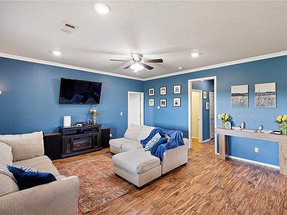 The beautiful flower gardens create a warm welcome as you arrive to the driveway. Step into this charming all-brick home featuring 3 bedrooms, 2 full baths, and an open kitchen/dining area that overlooks 40+ fully fenced acres. Perfect for your own livestock or continue with the current land tenants for added income. Fenced in backyard for the kiddos and pets.