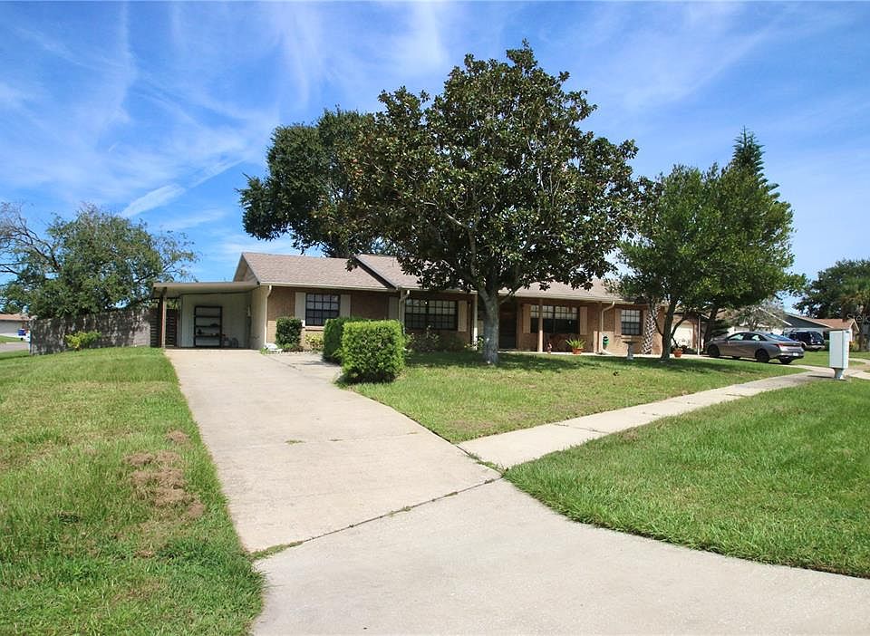 Discover this charming half duplex in the tranquil Pelican West subdivision, ideal for first-time buyers, snowbirds, or investors. Recently updated throughout, and featuring a NEW ROOF and enclosed backyard, this inviting home features warm tile plank flooring in the Living Room, creating a cozy atmosphere. The kitchen includes a breakfast bar, oak cabinets, and an adjacent laundry closet for added convenience. The spacious Florida room is perfect for entertaining family and friends. A 9x9 shed provides extra storage and room for gardening tools. The voluntary HOA offers access to a clubhouse and pool, enhancing your leisure options. Conveniently located minutes from grocery stores, banks, dining, with easy access to I-95 and only 20 minutes to the (New Smyrna) beach. Easy to show — schedule an appointment with 24 hours’ notice.