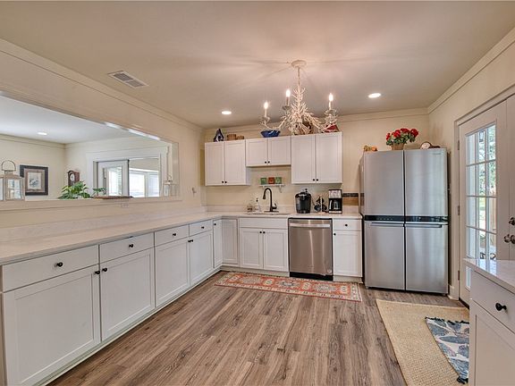Move-in-ready home just blocks from Darien’s scenic waterfront! This 3-bedroom, 2-bath brick home blends modern upgrades with timeless charm, offering comfortable living and exceptional outdoor space. The home features LVP flooring and 6” baseboards. Both bathrooms showcase custom, cultured marble showers. The den is separated from the living area by french doors allowing for privacy if desired. The large open kitchen has abundant cabinet storage, quartz countertops, and under-mount double sink with garbage disposal. The laundry room doubles as an organized pantry of extra cabinets and quartz counter space. French doors lead out to a great backyard providing the perfect place to relax and enjoy a party. The large concrete patio and wooden deck gives 500 square feet of space for lounging and entertaining under the shade of a grand oak. The fully fenced yard ensures seclusion and security, with plenty of room for pets. A new 18’×20’ steel building with its roll up door gives you a private place to store your ATV, golf cart, or workshop tools. The HVAC system that’s only 4 years old, provides energy efficiency and peace of mind. A new double car drive provides plenty of room for parking. In a minute or two you can run around town and enjoy the waterfront, restaurants, and shops in Darien’s sweet southern community. It’s only a few blocks away from the waterfront. Don’t miss your chance to own a piece of Darien’s charm. Schedule your tour today!