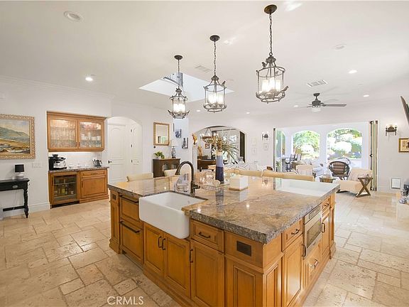 Sub zero refrigeratorHalf bath downstairsTravertine floorsTwo kitchen sinksOpen floor planWine refrigerator