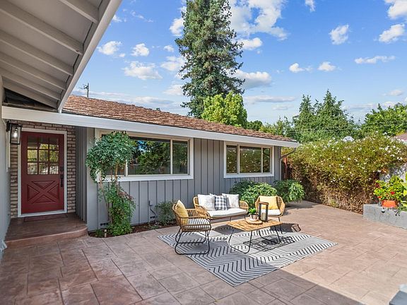 Light-filled cul-de-sac home near Apple Park. Less than a mile from Apple Park and a short drive to Google and LinkedIn, this home combines modern style, flexible spaces, and a coveted location at the end of a cul-de-sac. The chef's kitchen features a large island with five-burner gas cooktop, stainless steel appliances, and quartz countertops with matching backsplash. It flows seamlessly into dining area with bay window and built-in china cabinet, then into the bright living room with wall-to-wall windows and sliding doors opening to paved patio. Extended family room with wet bar and oversized windows offers space for entertaining, game nights, or even a fourth bedroom. The primary suite boasts walk-in closet, dual sinks, and access to backyard deck, while the hall bath charms with custom tilework and lovely arched window over the tub. Multiple outdoor areas make the most of California living. Gated front courtyard; side yard with arbor; and lush backyard retreat shaded by mature redwoods, maples, and fruit trees. Private gate opens directly to 11.9-acre Raynor Park with basketball courts, dinosaur-themed play structure, reservable event space, and more. Students have access to excellent schools-Laurelwood Elementary, Peterson Middle, and Wilcox High (buyer to verify).