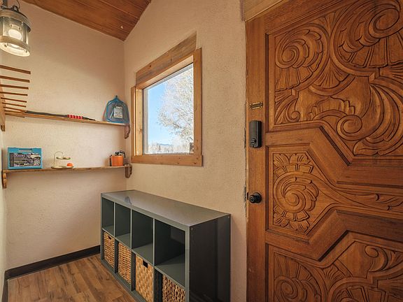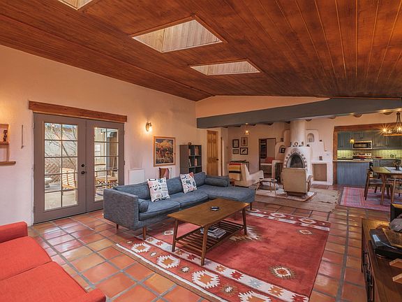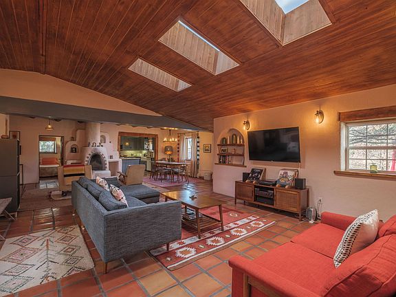 Lovely Private Adobe Home Near Town ~ Welcome to the Bird & Hand Ranch, a 2 bed 1.5 bath home on a lush .76 acre lot with a pond near Downtown Taos within the county limits. This residence is a rare rare find and does extremely well as a short-term rental with income of $70k+ annually. Truly the perfect place for full-time living, an investment property, or a little of both for short trips back to Northern New Mexico. The adobe home boasts countless classic Southwest features with vibrant finishes throughout. The two main bedrooms are large enough to fit king size beds, or twins to accommodate more guests. There is a third room which can be switched between an office or a bedroom with space for a convertible couch or two. The spacious kitchen with all your utilities is ideal for large family get-togethers during the holidays, or prepping small family meals. The newly added great room with high south facing windows near the viga beams was recently added to the home in 2022 and is the perfect place for fireside chats, spinning records, reading, and movie nights. This same area also fits a large dining room table, and is big enough to sleep more guests if necessary. The large primary bathroom is surrounded by elegant tile up the walls, and contains a soaking tub, walk-in shower, with plenty of storage, and radiant heated floors for complete comfort. A new septic system in place with the ability to ad second full-sized bathroom. The exterior of the property features a giant lush yard for the kids and pets to roam, a jacuzzi, and a latilla covered flagstone patio with a fireplace perfect for fireside meals, drinks, and entertaining. Outdoors, you'll find a serene landscape in a semi-rural neighborhood dotted with mountain views, fruit trees, birches, cottonwoods, magpies, and mallards. This is a home for relaxing, entertaining, spreading out, and setting off on adventures. Come have a look for yourself!