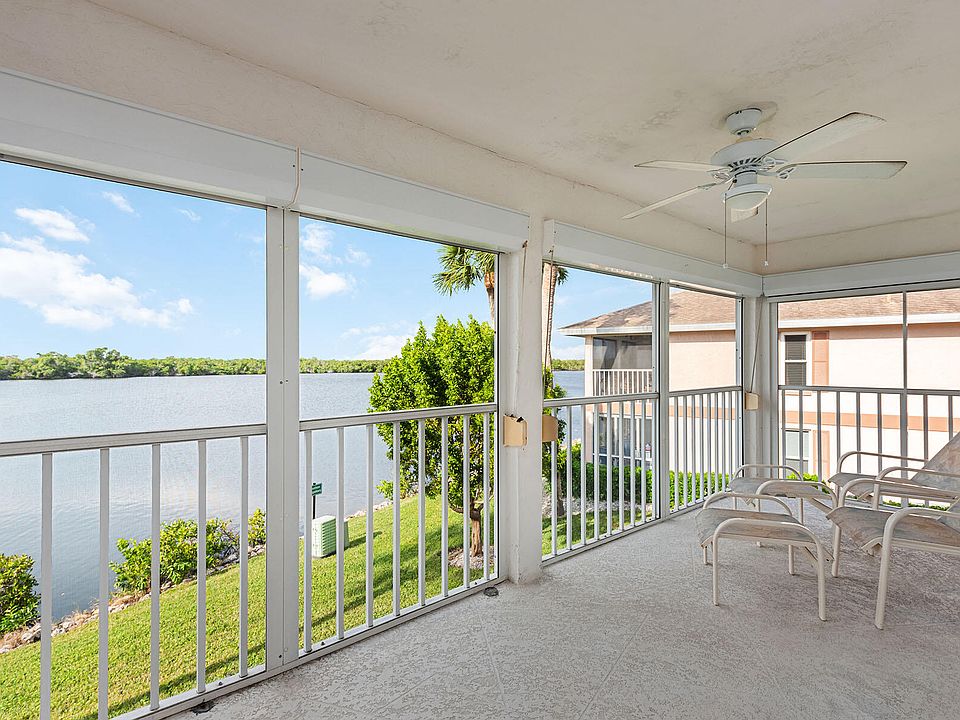 Fully remodeled second-floor, end-unit condo with breathtaking wide water and preserve views. Upon entering, you'll be impressed by vaulted ceiling, ample natural light and high-end finishes throughout that include wood-look tile floors and plantation shutters. The home boasts two beautifully appointed bedrooms, each featuring an ensuite bathroom with an updated white shaker-style vanity, quartz countertop, and walk-in shower. The owner's suite includes a walk-in closet and private access to the lanai through French doors. The remodeled kitchen is fully equipped with modern appliances including a brand-new refrigerator, quartz countertops, white shaker-style cabinetry, and a water filtration system. The adjacent living room flows seamlessly into the covered screened-in lanai, the perfect spot unwinding and soaking in the panoramic views. Additional noteworthy features include 2018 roof, in-residence laundry, roll down storm shutters, and outstanding rental potential with 12 rentals permitted annually. Mainsail residents have access to two swimming pools, tennis and pickleball courts, and a boat dock. Perfectly located between Marco Island beaches and Downtown Naples.