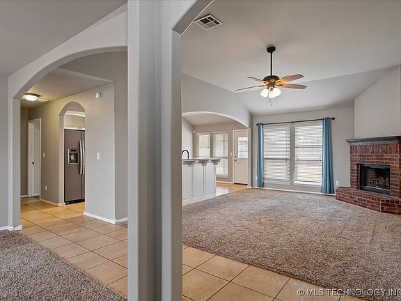 Fantastic full brick single story across from the park and a quiet cul de sac. New interior paint, New counter and backsplash. New faucet, sink and dishwasher. Freshly painted cabinets. Feature walls. New Hot Water Heater 2024. Roof 2017. New Light fixtures throughout. Custom bathroom mirrors. Split bedroom floor plan with Private Primary on East side of the home. Open Living with corner fireplace, Kitchen and Eating. Formal dining or flex space by entry. Large covered patio. Clean and tidy.