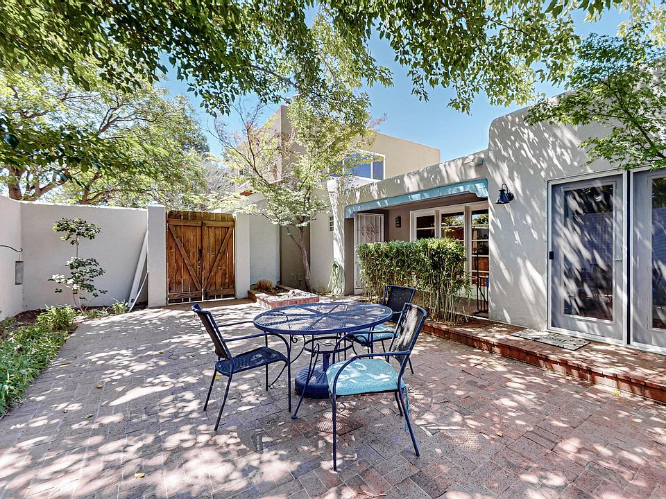 This fantastic Altura Park home has so many possibilities! Close to Nob Hill, Downtown, shopping and restaurants. It is currently being used as a 2-unit vacation rental. Top floor is a studio with kitchenette, 3/4 Bathroom, walk-in closet and cozy Kiva fireplace. Bottom floor is a 3 bedroom and 2 bath area with flowing floor plan, gorgeous hardwood floors, furnishings and art (included with the property). You are greeted by a welcoming courtyard entry. Inside there are spacious rooms and an eat-in kitchen. Back yard has lush landscaping with apple and cherry trees, and hot tub. Hurry! This home won't last! Stucco, windows, hot tub, roof and upper unit bathroom have been updated within the last 6 years. Mini-split installed in upstairs studio in 2025.