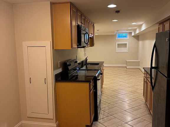 basement one bedroom apartment, galley kitchen, private access to apartment from parking pad.