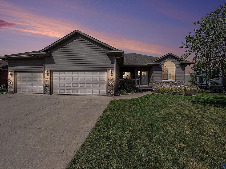 Welcome to your dream home in Tea! This stunning 4-bedroom, 3-bath ranch-style home boasts an oversized 3-stall garage and an ideal layout for modern living. Step into a spacious, open-concept kitchen, dining, and living room—perfect for entertaining and everyday comfort. The kitchen offers ample counter space and storage, making it a chef’s delight. The main floor features a generous primary suite complete with an en-suite bath and a large walk-in closet. You’ll also find a second bedroom, convenient main floor laundry, and a well-designed mudroom to keep things organized. Downstairs, the fully finished basement expands your living space with two more spacious bedrooms, a large entertaining area with a built-in bar, and plenty of room to relax or host guests. Outside, enjoy the fully fenced backyard—perfect for pets, or outdoor gatherings—all within walking distance to Tea Area High School! Don’t miss this opportunity to own a thoughtfully designed home in a desirable neighborhood!